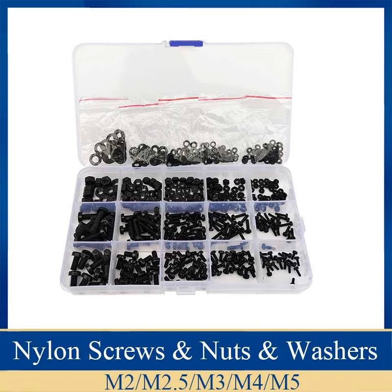 510Pcs M2 M2.5 M3 M4 M5 Nejlon Hex Csorog Csak Nutorkország Staker Változó Kit Fekete Műszaki Működtetés