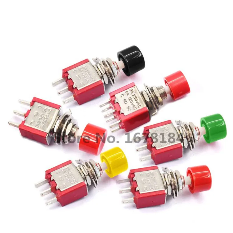 5Db 3Pin C-No-Nc 6 Mm-Es Mini Pillanatnyi Automatikus Visszatérő Gomb Bekapcsolás- (Be) 2A 250Vac/5A 120Vac Kapcsoló Kapcsolók