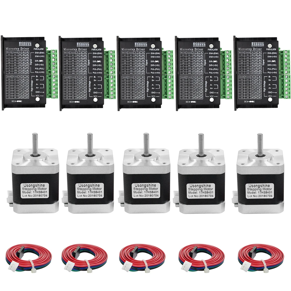 5Db Motoros Hajtáscsomag Tb6600 Vezető Nema17 Léptetőmotor 17Hs8401 0.55N.M 3D Nyomtató Cnc Lézeres Gravírozási Géphez