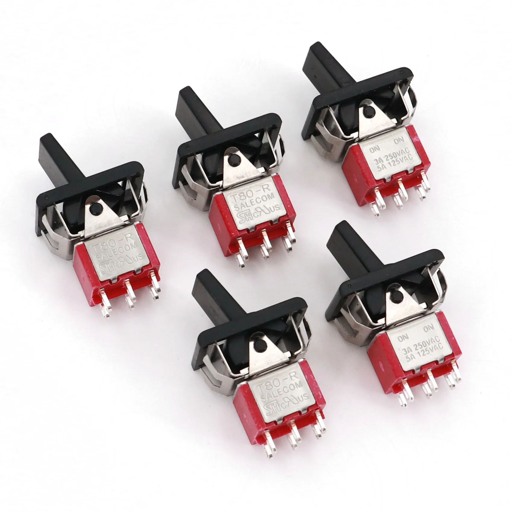 5Db Sh T80-T Sorozat 3Pin Spdt Függőleges Jobb Szög Pcb Mount Mini Toggle Kapcsoló