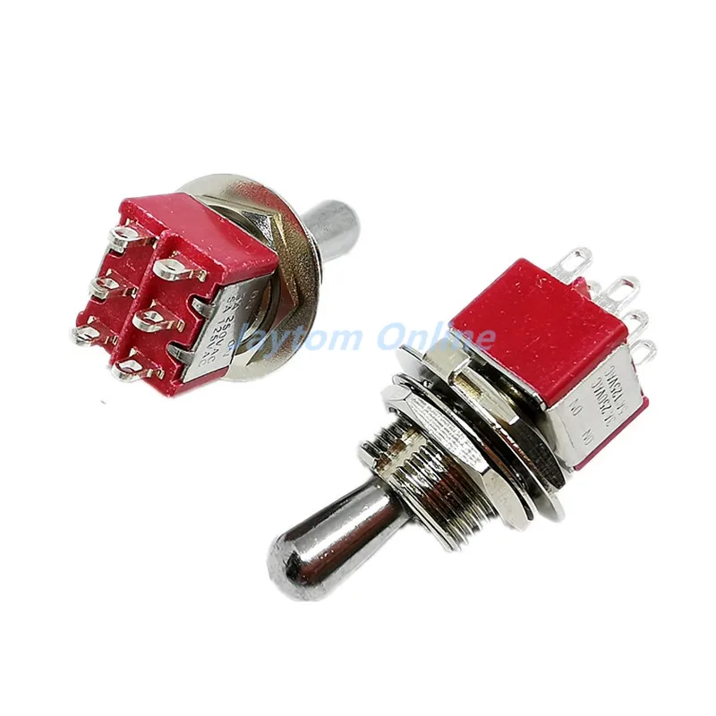 5Db T80-T 12Mm-Es Be- És Dpdt 6Pin 2Pozíció Karbantartott Mini Kapcsoló Rövid Fogantyú 3A 250Vac/5A 125Vac