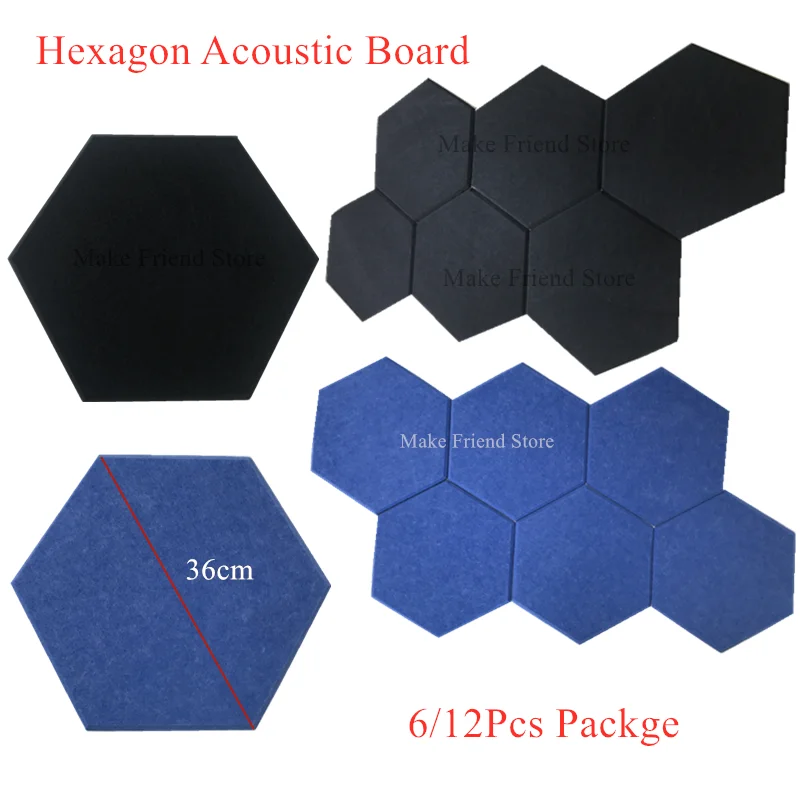 6/12Db Hexagon Studio Acoustic Board Hangszigetelő Abszorpciós Kezelő Panel Faldekoráció 360 Mm Átlós X 9 Vastagság