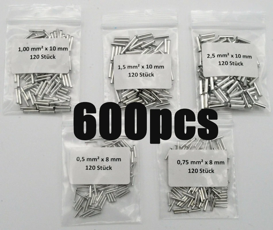 600Db Cső Típusú Csupasz Terminál Kombinált Huzal Végű Hüvelyek Választéka 0,5 / 0,75 1,0 1,5 2,5 Mm²
