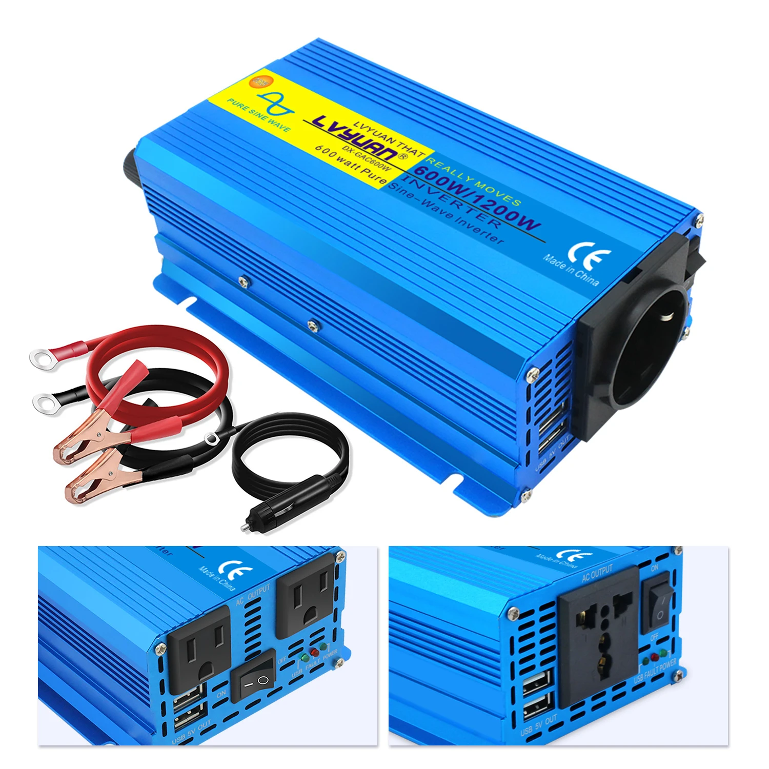 600W/1200W Tiszta Szinuszhullámú Inverter Dc 12 V –