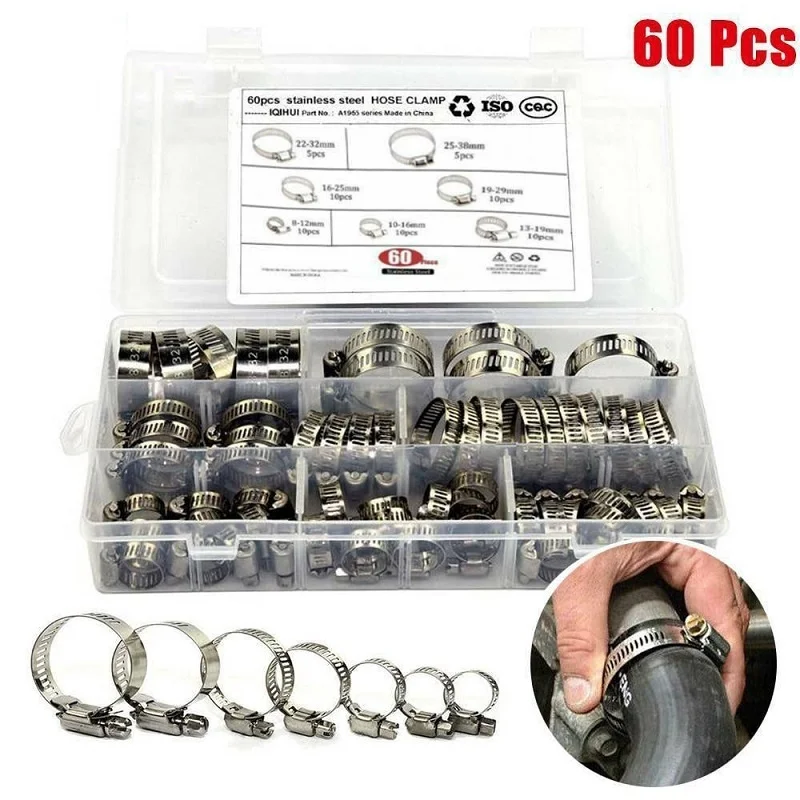60X Válogatott Rozsdamentes Acélból Készült Tömlőbilincskészlet, Nincs Vezető Jubileumi Klipek Beállítva