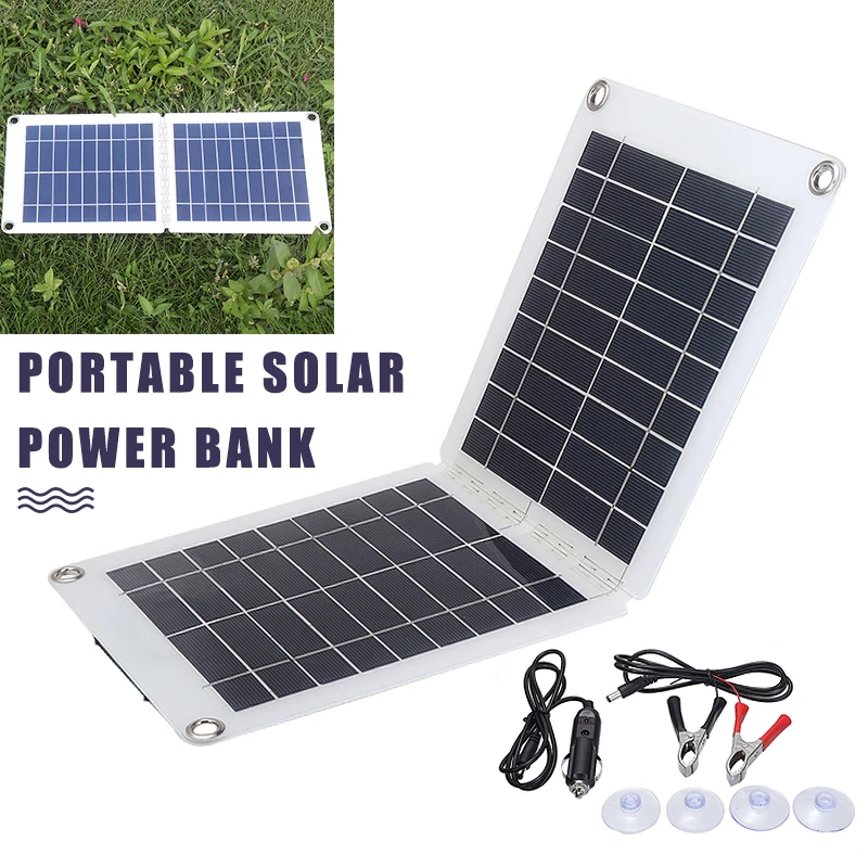 60W Napelemes Panel Rugalmas 18 V/12 V/9 V/6 V Összecsukható Dupla Usb Monokristályos Napelem Telefonos Akkumulátorhoz Elektronikus