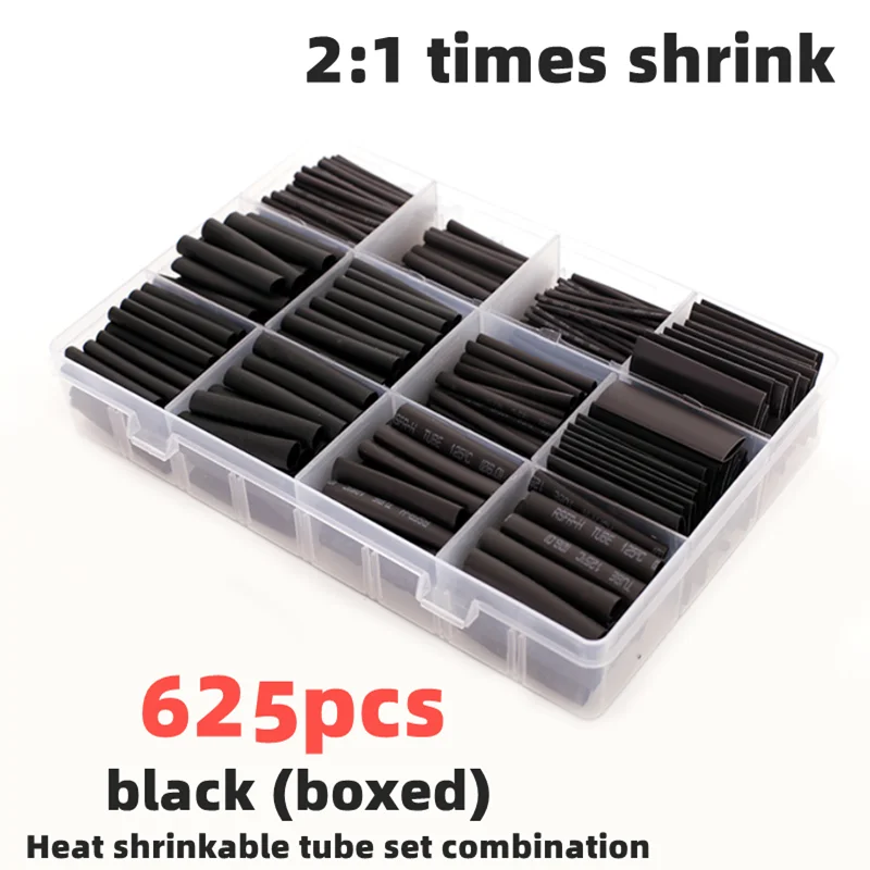 625Pcs Fekete Dobozos Hőcsökkentés 2: 1 Elektronikus Csatlakozó Készlet Szigetelt Poliolefin Hüvelyes Zsugorodó Kábelek És Cső