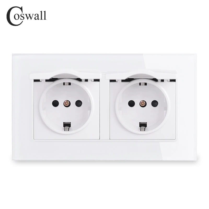 Coswall Fal Üveglap Tápaljzat Földelt Eu Oroszország Spanyolország Double Outlet Gyerekekkel Védőzárral 146 * 86Mm C1 Sorozat